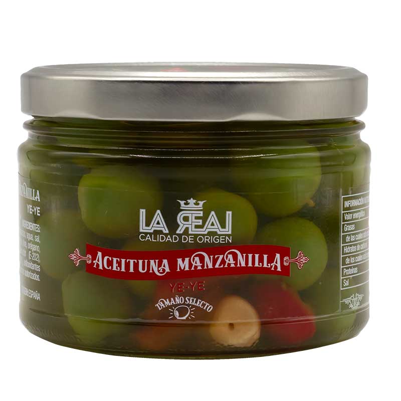 Los Aceituna Envasada Ye-Yé son aceitunas de la variedad Manzanilla Rayada, con un calibre entre 140/180, muy suaves al paladar. Se presenta en un envase de vidrio con un contenido escurrido de 270 gr.