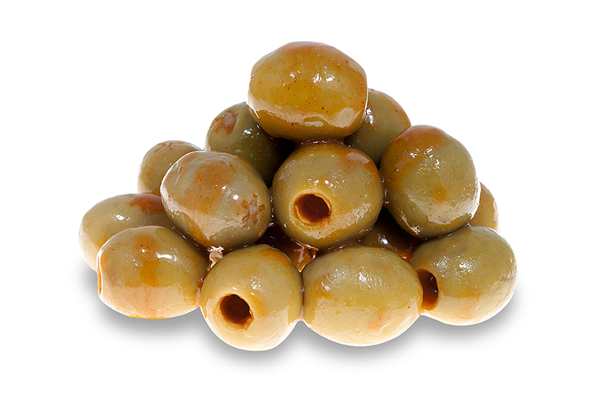 Esta aceituna se encentra acompañada por una salsa con matices ligeramente picantes pero a la vez con un sabor suave muy agradable al paladar, que junto con al color rojo intenso consiguen una composición irresistible a nuestros sentidos.