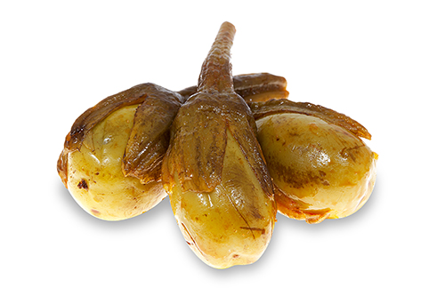 La Berenjena Pequeña encurtida, de la variedad “Almagro”, son de tamaño pequeño, alargadas y redondeadas, de textura carnosa y sabor sabroso. Aliñadas con Aceite de oliva, sal, vinagre y una selección de especias naturales.