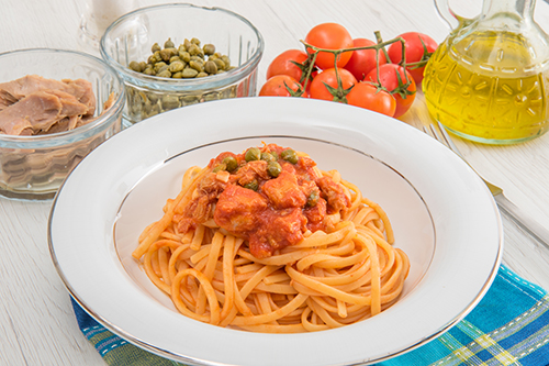 Macarrones y espaguetis con conservas de pescado a granel añadidos
